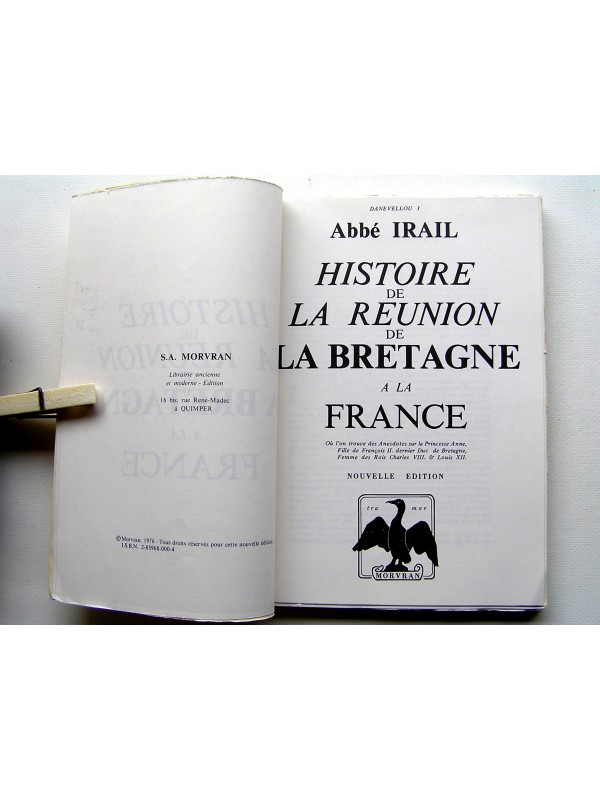 Réédition, en 1976, d'un ouvrage en deux tomes de l'Abbé Irail publié en 1764 et quasiment introuvable sur l'histoire de la réunion (annexion pour certains) de la Bretagne à la France sous Anne de Bretagne.