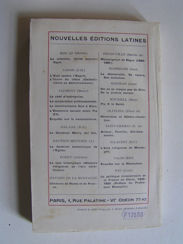 Ce livre nous donne le point de vue catholique de l'avancée du principe de laïticité entre 1882 et 1889 dans tous les domaines et spécialement dans la politique scolaire.