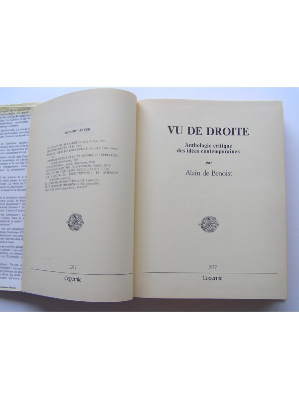 Grand penseur de la "Nouvelle Droite", Alain de Benoist est indiscutable un esprit encyclopédique. On peut ne pas être d'accord sur tout et, pourtant, trouver dans ce livre, cette anthologie, matière à allimenter une réflexion indispensable pour remettre ses idées à l'endroit.