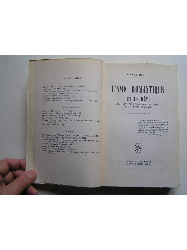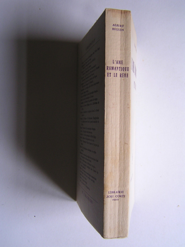 Nouveau tirage de 1974 de la seconde édition de 1939 (la première est de 1937) d'un ouvrage de référence, sans doute le plus complet, sur le romantisme allemand au XIXéme siècle (introductions aux livres, présentations des auteurs et analyses subtiles des idées) et sur son influence, à travers le rêve, sur les poètes français de la fin du siècle (Nerval, Hugo, Baudelaire, Rimbaud et Mallarmé).