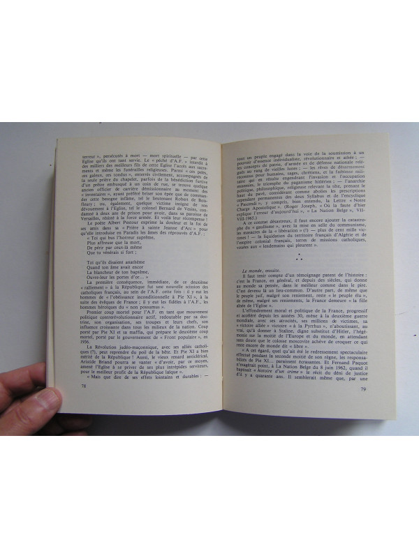 Les auteurs, animateurs d'un mouvement de défense de la Tradition catholique, expliquent, en remontant au Modernisme, à la Démocratie Chrétienne et à la condamnation de l'Action Française par Rome, ce que, dans les années 70-80, on a appelé "la crise de l'Eglise" et sa "conversion" (selon les auteurs) à la Révolution maçonnique.