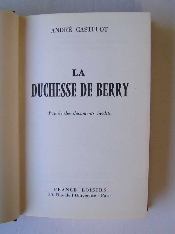 Qu'elle formidable histoire que celle de cette mère qui va tenter de soulever les provinces royaliste de l'Ouest pour chasser Louis-Philippe et placer sur le trône de France, Henri V, son fils. Une épopée où se mêlent le courage, le sacrifice, la fidélité, le septicisme et la trahison. Une femme d'exception au destin tragique.
