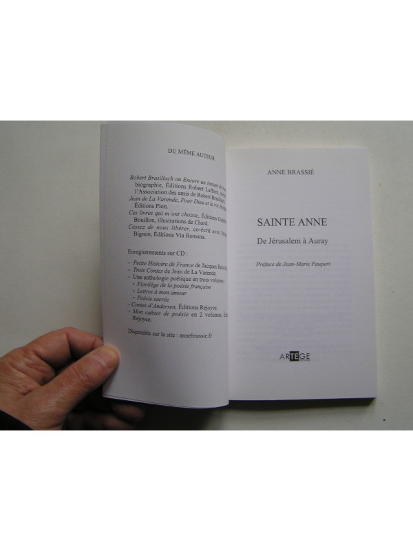 La vie de Sainte Anne racontée par Anne Brassié apparaît très vite dans la tradition chrétienne à travers des récits dits apocryphes (dans le sens théologique: que l'Eglise ne tient pas pour canonique) mais qui sont du domaine de la connaissance de la Foi. Une vie tournée vers Dieu. Déjà vers l'an 500 la tradition la rattache à la Bretagne et surtout à Auray à partir des apparitions en 1623-1625.