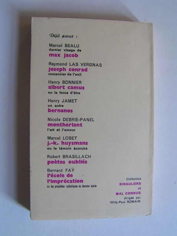 Un livre de synthèse sur trois auteurs profondément catholiques, aux caractèrex différents, aux accents littéraires parfois opposés, mais uni dans une même imprécation pour les hommes qui refusent "la lumière de Dieu".