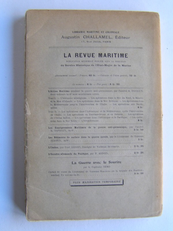 Sur le rôle de la Marine dans la stratégie lors des guerres et spécialement, en s'appuyant sur l'expérience des Allemands dans la Grande Guerre, le rôle de la guerre sous-marine. Cet ouvrage a été rédigé pour répondre aux interrogations qui ont cours dans les milieux politiques et militaires à la fin de la guerre sur l'utilité du sous-marin.