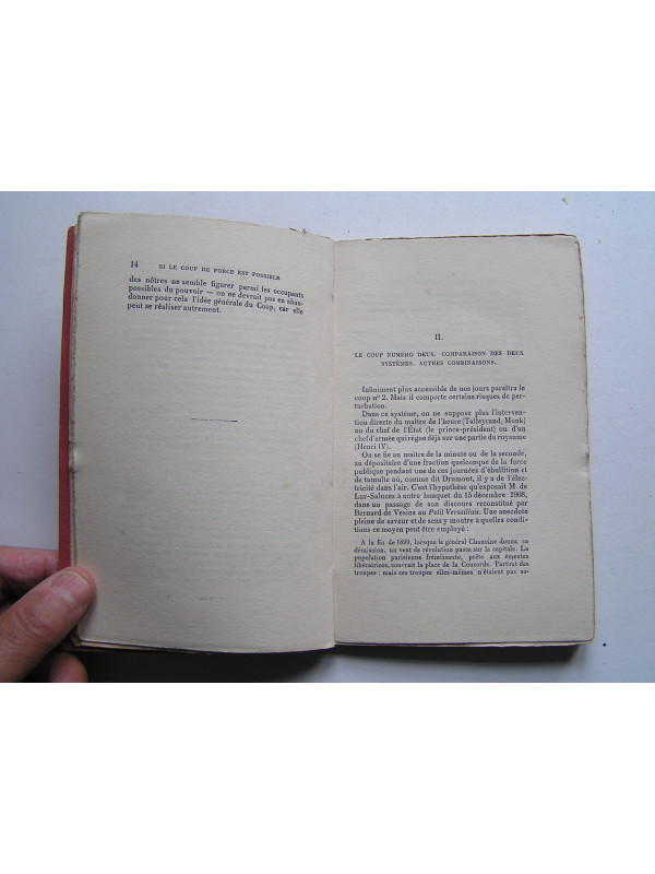 Les auteurs expliquent ce qu'ils entendent par "coup de force" qui n'a rien avoir avec "coup d'état" ou "révolution". Ils s'appuient sur les exemples de deux rétablissements du pouvoir royal: Talleyrand lors de la Restauration en 1814 et le général Monk en 1660 pour le trône d'Angleterre. Pour eux, il est capital d'avoir en réserve une "élite", réduite mais s'appuyant sur un vaste mouvement populaire, capable de saisir les occasions. Le titre de l'ouvrage peut paraître scandaleux de nos jours mais c'est ce que De Gaulle a fait en 1958.