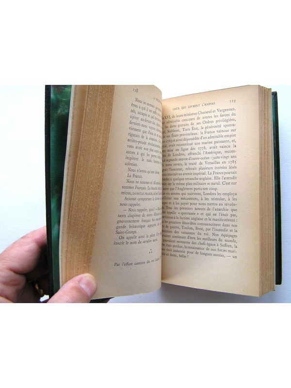 Modeste mais agréable reliure amateur en demi-chagrin vert bouteille à bandes (plats et dos de couv conservés), dos plat et tranche de tête dorée.