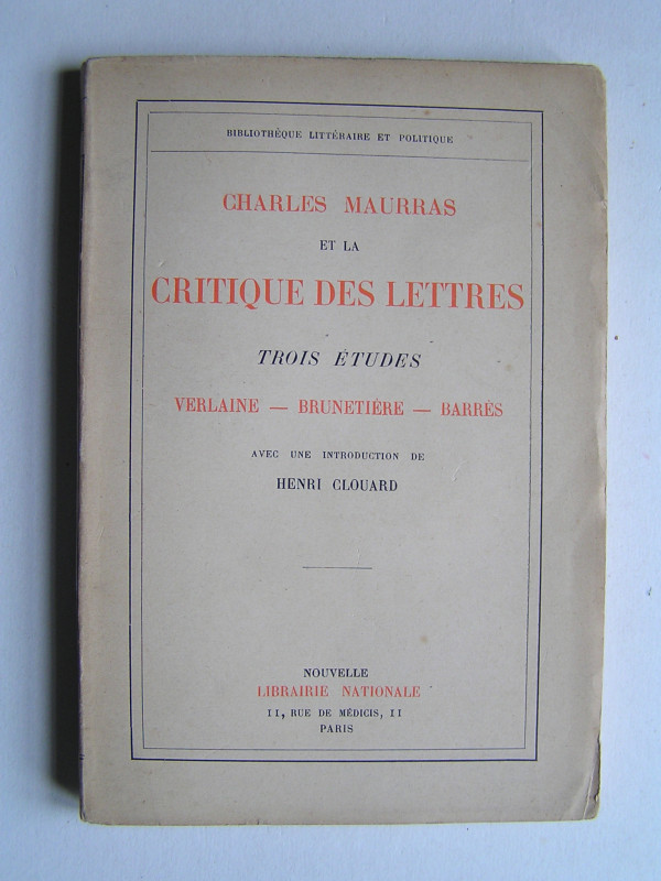 Trois études: Verlaine _ Brunetière - Barrès. Avec une introduction (forte de 44 pages) de Henri...
