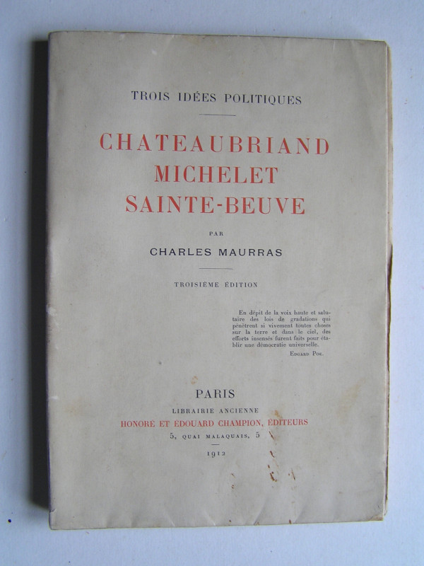 A son point de vue: Chateaubriand est néfaste car faussement traditionnel; Michelet est nuisible car corrupteur de la jeunesse mais Sainte-Beuve trop méconnu est un modèle pour l'avenir.
