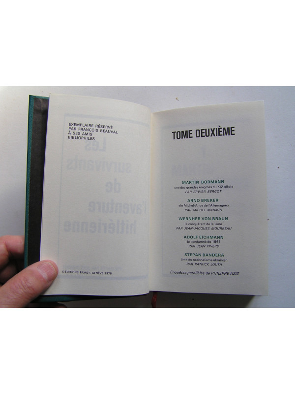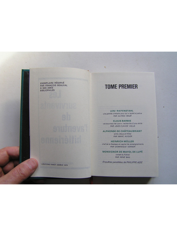 "En présentant au lecteur la biographie de quelques survivants de l'hitlérisme nous sommes conscients l'encourir une certaine responsabilité. Elle tient d'une part à la charge émotionnelle du sujet, d'autre part aux contestations qui portent parfois sur les faits mêmes, du moins dans leur relation avec les accusés. Nous avons tenté de parer à ce danger en présentant, pour chaque "survivant", en contre point d'une biographie rédigée parfois par un auteur ayant eu des relations personnelles ou politiques avec son personnage, un second texte qui, sans esprit polémique, éclaire ou peut éclairer différemment le personnage."