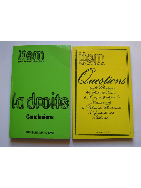 L'ensemble des 11 premiers numéros (numéroté de 01-02 à 14) de la revue (manque le n°7 numéro spécial sur les éléction municipales de 1977) auxquels nous ajoutons: le numéro de juin 1978 sur "Questions".