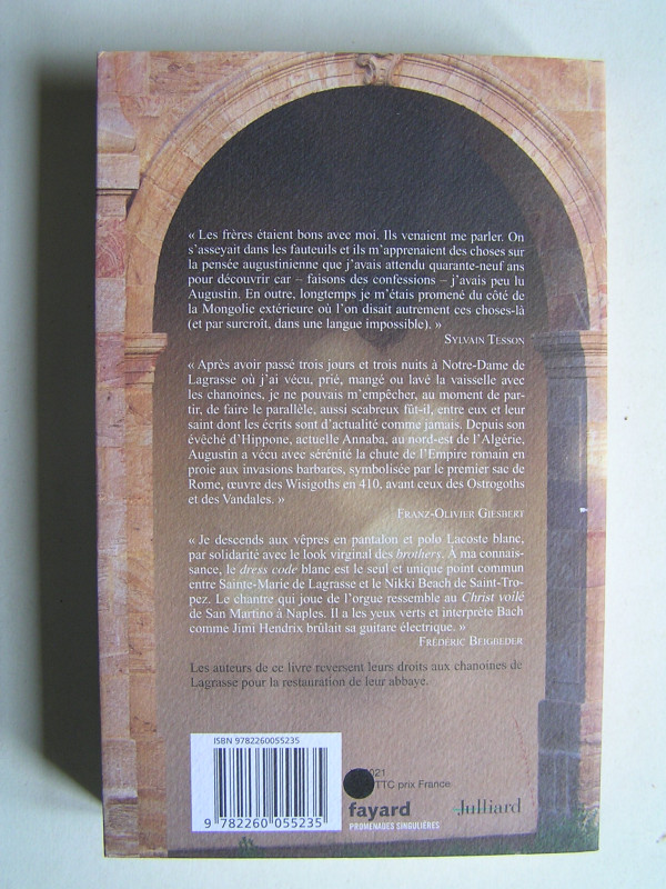 Quinze écrivains à l'abbaye de Lagrasse presque isolé du Monde et en face à face avec des "hommes de Dieu". "Voilà les beaux récits de ses expériences inoubliables, pleine de péripéties et de surprises..."