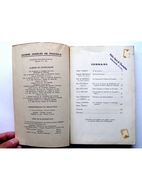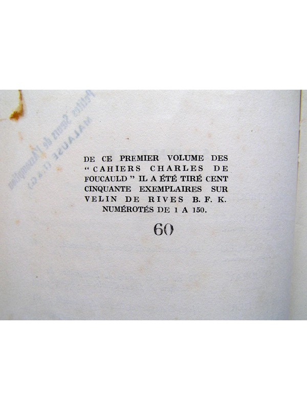 | Collection | Cahiers Charles de Foucauld. Exemplaire de luxe numéroté. |