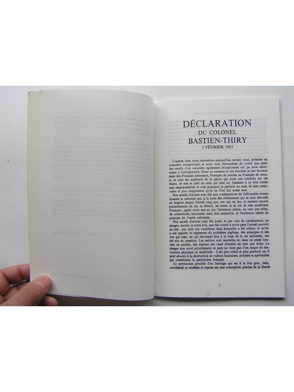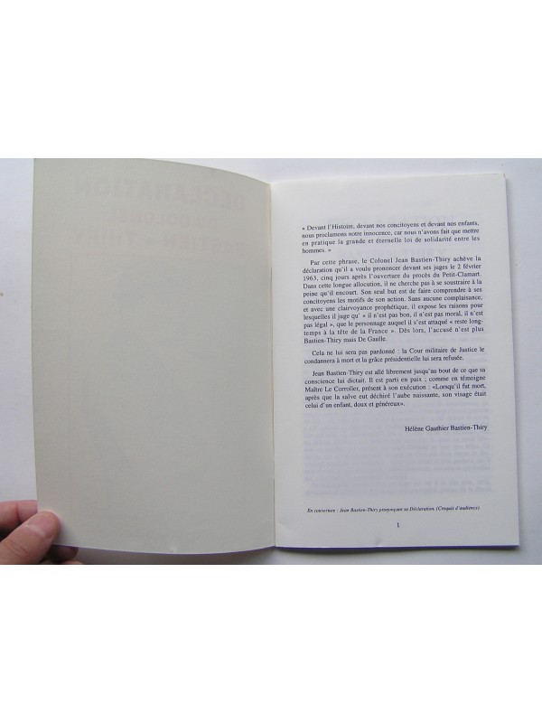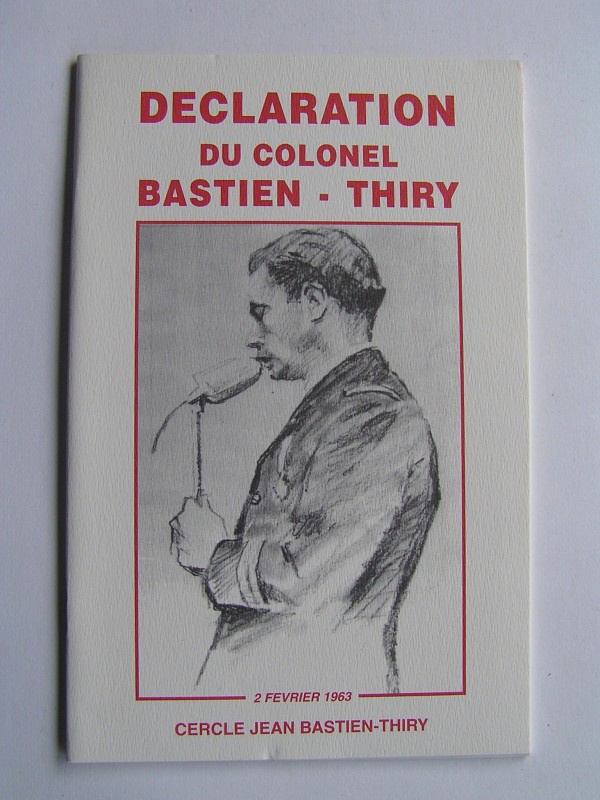 La déclaration du colonel Bastien-Thiry, véritable réquisitoire, sans haine et sans peur, contre De Gaulle et son régime, magnifique plaidoyer pour une France Chrétienne, est une belle leçon de véritable patriotisme.