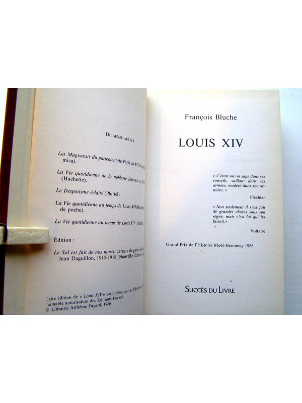 Une légende noire a fait de Louis XIV ce monarque vaniteux, assoiffé de conquêtes et de flatteries dont les manuels perpétuent l'image. Au terme d'un immense travail, François Bluche s'inscrit en faux contre elle et nous offre le portrait d'un souverain audacieux, dévoué à la France, d'un mécène généreux et éclairé, d'un innovateur qui apparaît comme l'un des fondateurs de l'état moderne.