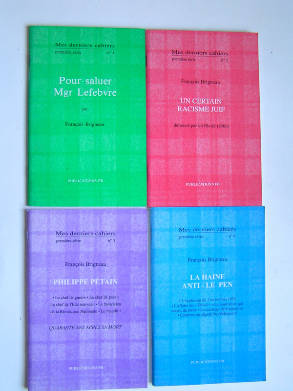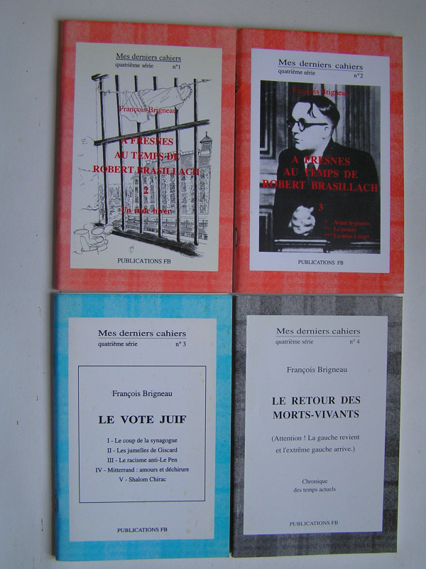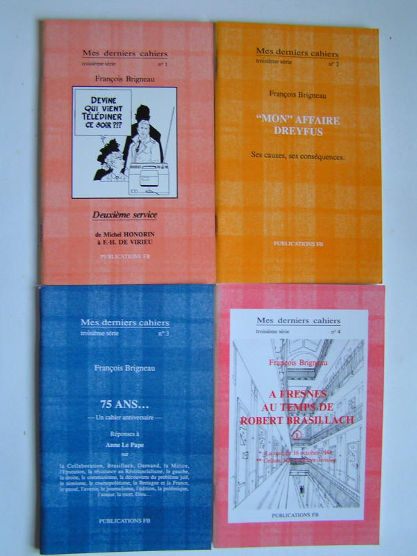Les sujets les plus variés sont ainsi traités: Mgr Lefèbvre; le Maréchal Pétain; Philippe Henriot; Le Pen et beaucoup d'autres sujets "politiquement incorrects" et, bien sûr, dans trois merveilleux cahiers de piété fraternelle, le poète fusillé, Robert Brasillach.