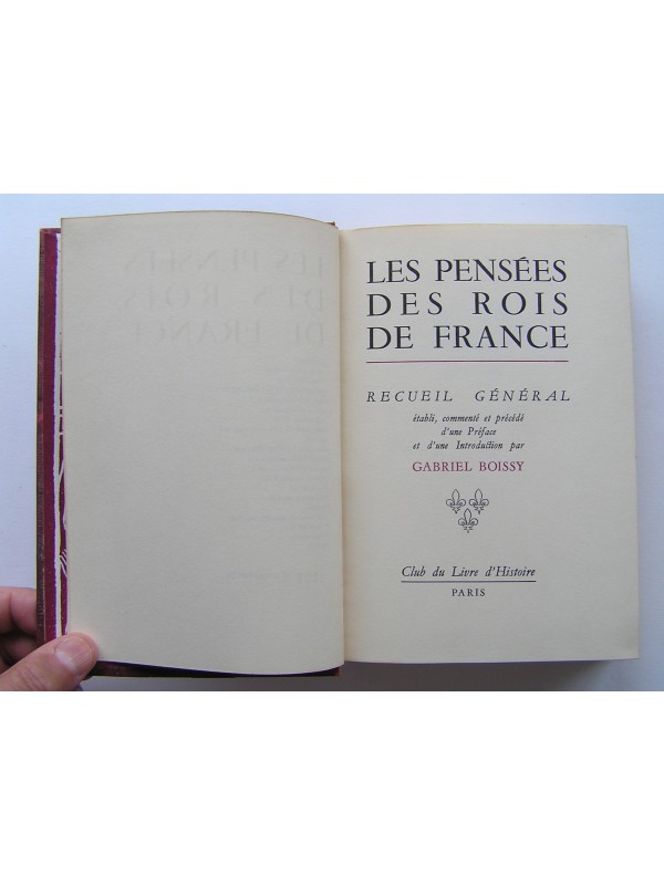 Un recueil général établi, annoté et commenté par Gabriel Boissy des "pensées des rois de France"...