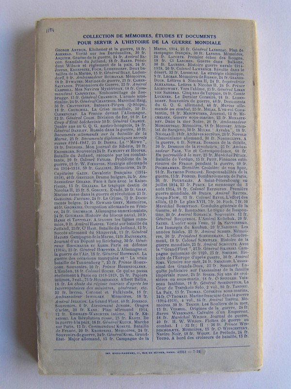 | Collection | Collection de mémoires, études et documents pour servir à l'Histoire de la Guerre mondiale |