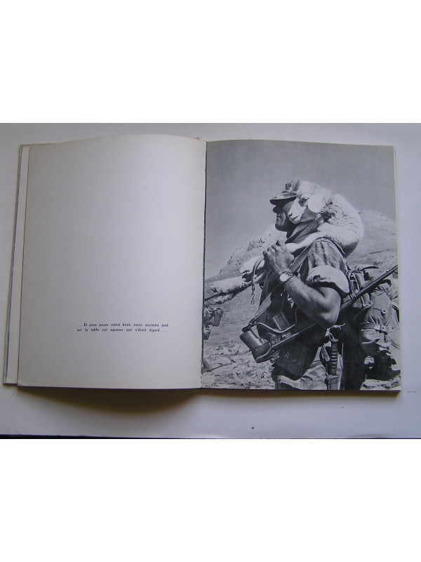 Une centaine de pages et une centaine de très belles photos montrent la vie du soldat parachutiste en opération dans le djebel ou dans le désert algérien: la fatigue, la soif, la sueur, l'angoisse et pour finir l'âpreté du combat, la blessure et, pour certain, la mort comme celle du sergent-chef Sentenac, émouvante dans sa simplicité.