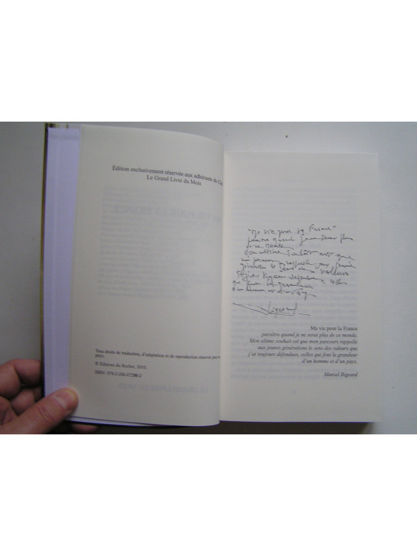 "Ma Vie pour la France paraîtra quand je ne serai plus de ce monde. Mon ultime souhait est que mon parcours rapelle aux jeunes générations le sens des valeurs que j'ai toujours défendues, celles qui font la grandeur d'un homme et d'un pays." (Bigeard)