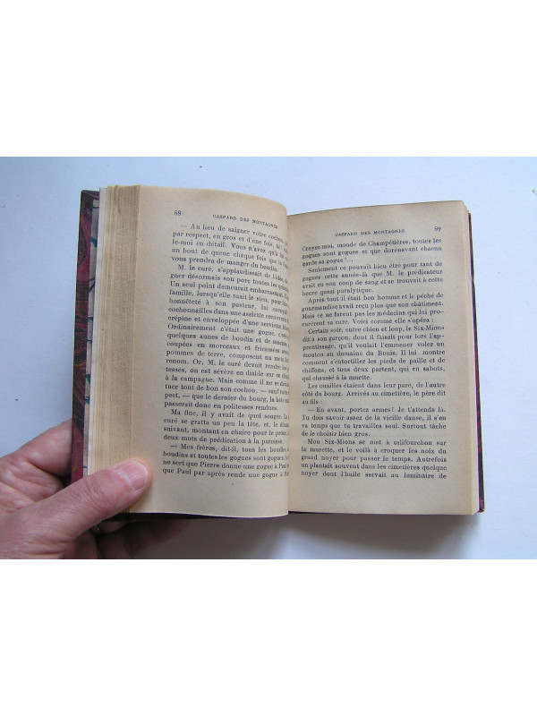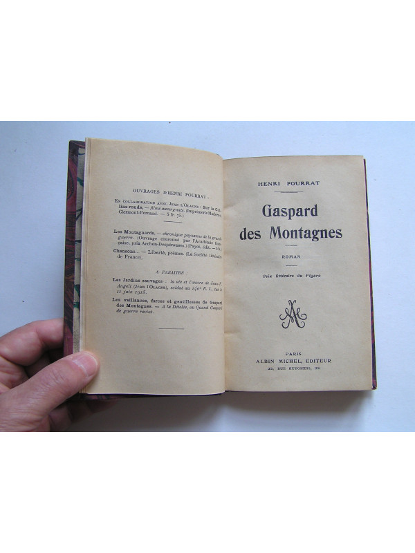 Edition de 1922 (année de la première édition) établi dans une reliure demi-cuir à gros grain long maron foncé, dos à quatre nerfs avec pavés titre-auteur or en cuir rouge, en bon état (franges des plats un peu frottées). intérieur bien propre (Tranche de tête légèrement salie et pages légèrement jaunies).