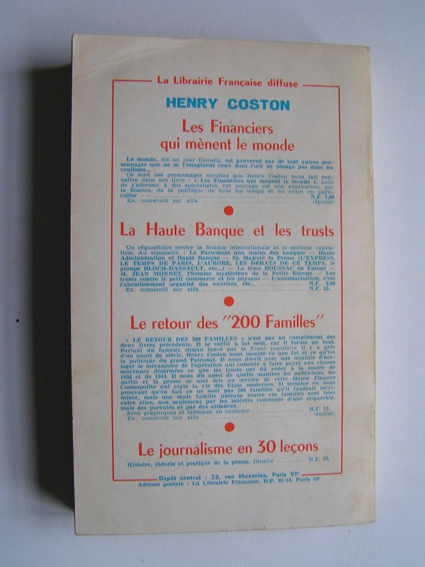 Sous la direction d'Henry Coston, une étude exhaustive qui traite de l'ensemble des partis, groupements, associations (y compris religieuses) qui ont existé des années 30 aux années 50. Un index de 10000 noms ainsi qu'un petit dictionnaire permettent de s'y retrouver.