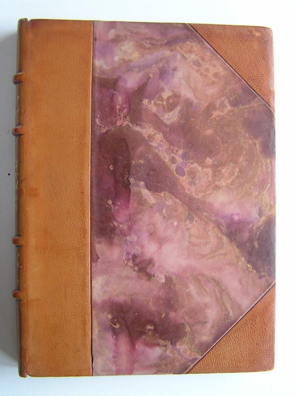 Exemplaire établi dans une agréable reliure (plats et dos de couv conservés) en demi-chagrin brun à coins, dos à quatre nerfs avec titre - auteur - motif or, et tranche de tête dorée en bon état (mors des plats très légèrement frottés et plus fortement aux coins).
