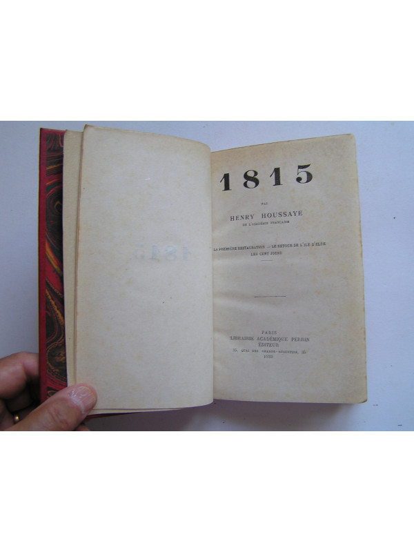 Relié en deux volumes le premier tome, en trois livres, de l'oeuvre monumentale de Henry Houssaye (qui comporte trois tomes), 1815: