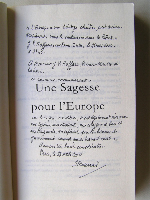 Avec un bel envoi de l'auteur à monsieur Jean-Pierre Raffarin, premier ministre de la France.