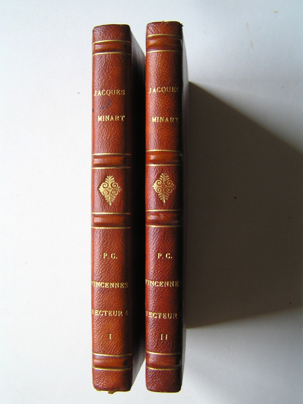 Les deux tomes dans une édition (la première) de 1945 établie dans une belle et solide reliure en demi-chagrin rouge (premier plat de couv conservé), dos à quatre nerfs avec titre-auteurs et motifs décoratifs or, en très bon état (très légers frottements en coiffes et aux coins du cartonnage). Intérieur bien propre (pages légèrement jaunies).