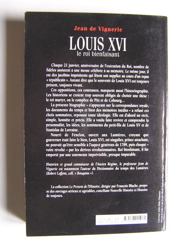 L'auteur nous livre une belle biographie de Louis XVI souvent décrié à Droite et à Gauche ou, pire encore ignoré. A partir de documents d'époque parfois inédit ou pas suffisamment exploités, Jean de Vigurie nous raconte un roi voulant bien faire: ouvert aux Lumières mais choqué par les excès de la Révolution; voulant le bien de son peuple mais conscient de sa charge.