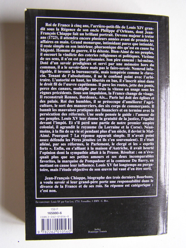 Cet ouvrage d'érudition rend justice à Louis XV qui fut tant décrié par les auteurs du XIXème siècle, les historiens et les romanciers. Jean-François Chiappe nous montre, sans toutefois cacher ses défaut, qu'il a été un grand roi: tenant de l'absolutisme, il ne le confond pas avec l'arbotraire. L'autorité en haut, les libertés en bas, il s'inscrit ainsi dans le droit fil de l'oeuvre capétienne".