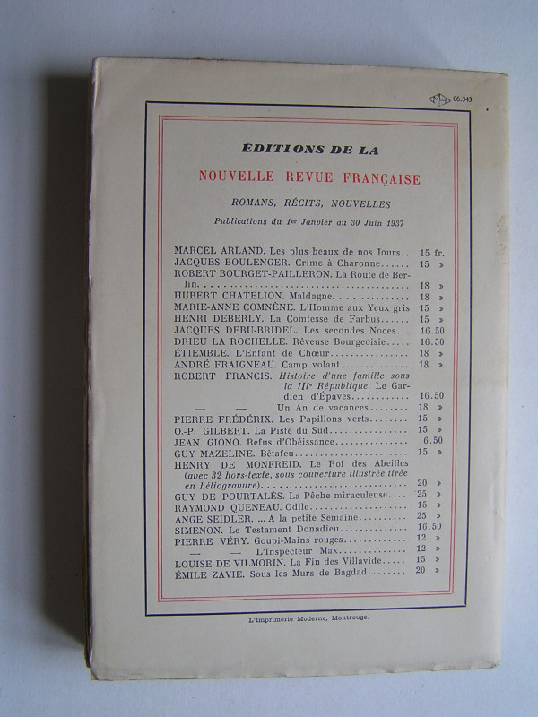 Edition de 1937 (année de la première édition) avec une mention fictive de huitième édition.