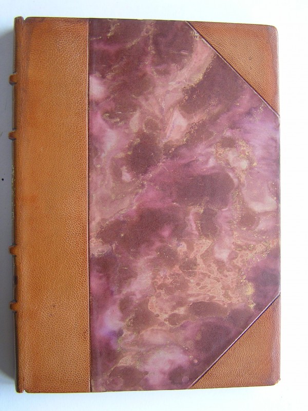 Exemplaire établi dans une agréable reliure (plats et dos de couv conservés) en demi-chagrin brun à coins, dos à quatre nerfs avec titre - auteur - motif or, et tranche de tête dorée en bon état (mors des plats très légèrement frottés et plus fortement aux coins).