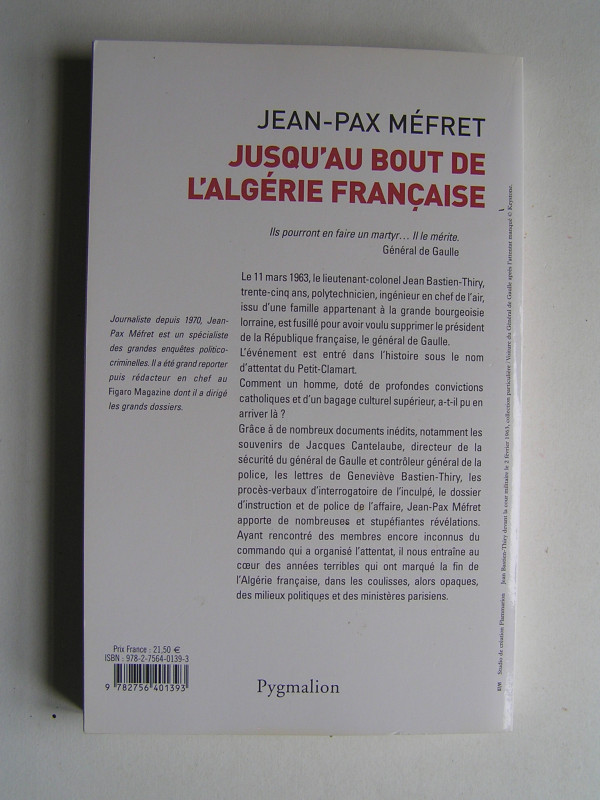 Grâce à des documents inédits mis à sa disposition, Jean-Pax Méfret non seulement dresse un portrait objectif de Jean-Marie Bastien-Thiry (ce qui n'est pas toujours le cas dans les ouvrages traitant de "l'attentat du petit Clamart"), relate toute l'affaire dans le détail mais également apporte de nombreuses et stupéfiantes révélations.