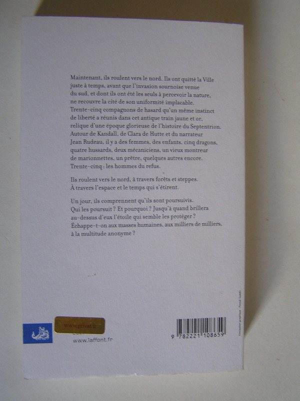 Ils ont quitté la Ville juste à temps, avant que l'invasion sournoise venue du sud, et dont ils ont été les seuls à percevoir la nature, ne recouvre la cité de son uniformité implacable. Trente-cinq compagnons de hasard qu'un même instinct de liberté a réunis. Ils roulent vers le nord. Un jour, ils comprennent qu'ils sont poursuivis.
