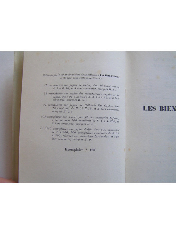 Un des 1220 exemplaires sur papier d'alfa réservés aux Séléctions Lardanchet numérotés A.1 à A.200 (n° A.120)