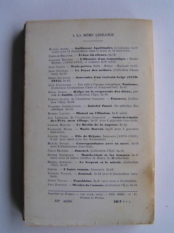 | Divers | Couv un peu salie. Dos insolé avec petit manque en queue. Intérieur propre malgré pages légèrement jaunies. |