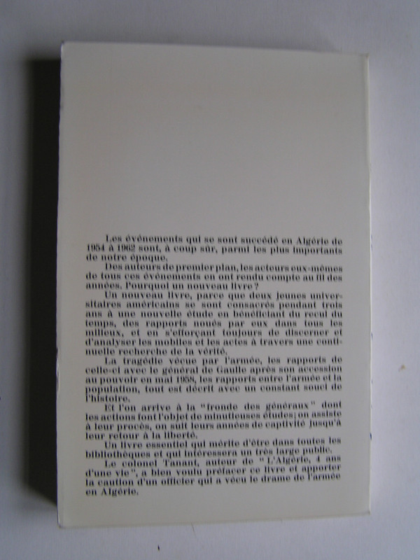 Préface du colonel Tanant, auteur de "L'Algérie, 4 ans d'une vie".