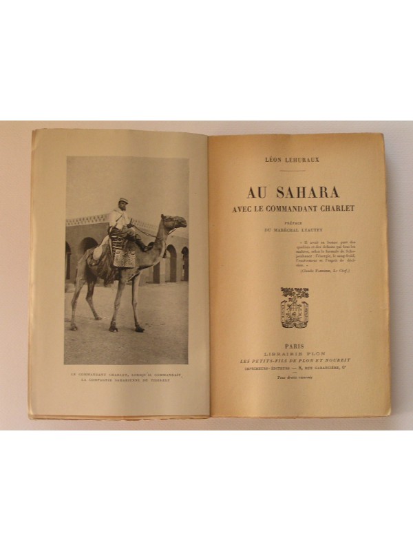 "En quelques pages précises et vivantes le capitaine Lehuraux, lui-même Saharien de longue date, nous retrace la physionomie et l'oeuvre d'un des plus magnifiques officiers qu'il m'ait été donné de rencontrer...A de tels hommes le Sahara offre des besognes à leur taille...Il crée. Rien n'entame son goût des responsabilités. "Il faut savoir dépasser les ordres qui ne viennent qu'à demi" écrit-il." (extrait de la préface)