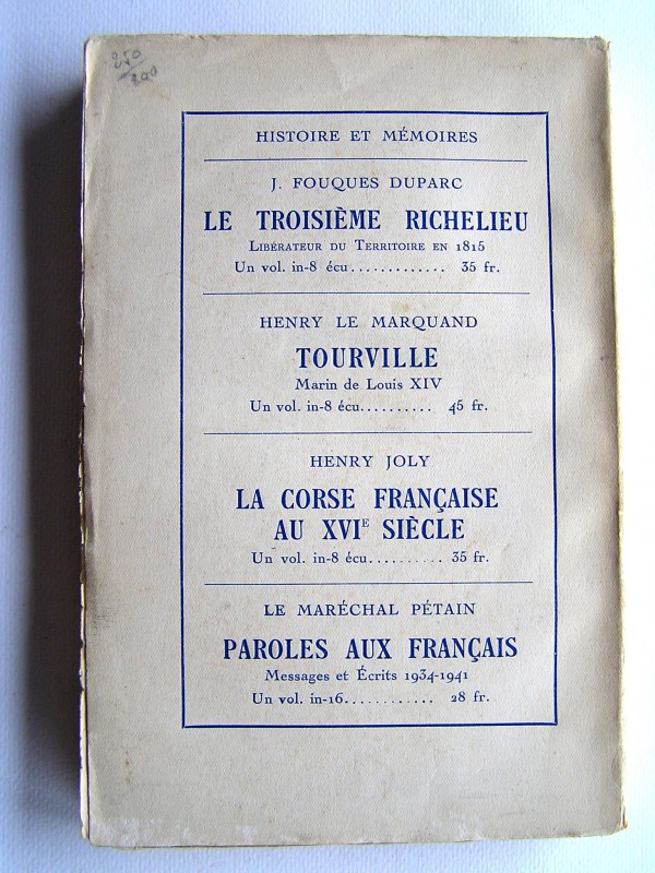 | Divers | Couv un peu usagée et frottée avec petit manque en coin au premier plat. Intérieur propre. Mention 8° édition. |