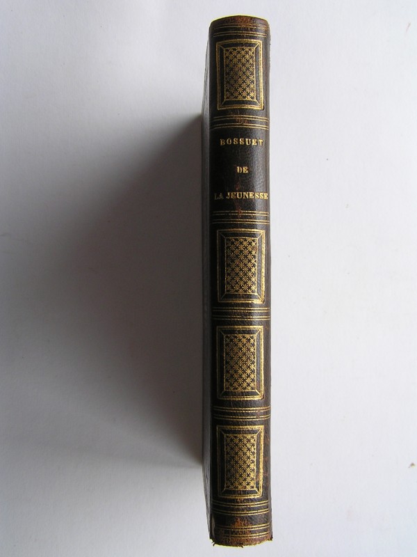 Dans une édition de 1853 publiée dans une collection "Bibliothèque de la jeunesse chrétienne", établi dans une reliure d'époque en plein cuir (chagrin?) à dos plat avec motifs or en caissons et plats ornés de motifs frappés à chaud et complété sur le premier plat par le blason de la ville de Paris or , en état moyen (coiffes frottées, mors fendus en tête et en queue avec petits manques, plats et coins frottés également). Tranches marbrées. Intérieur bien propre avec qqes rares et pales rousseurs en marge de qqes pages.