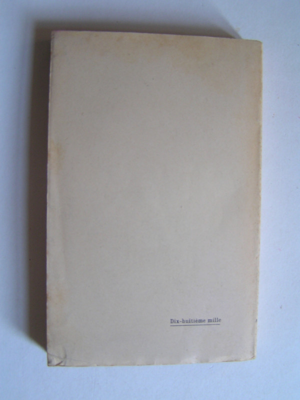 | Divers | Mention dix-huitième mille. Franges de couv très légèrement frottées (coins bas du premier plat un peu corné). Un léger pli de lecture au dos. Intérieur bien propre (pages très légèrement jaunies). |