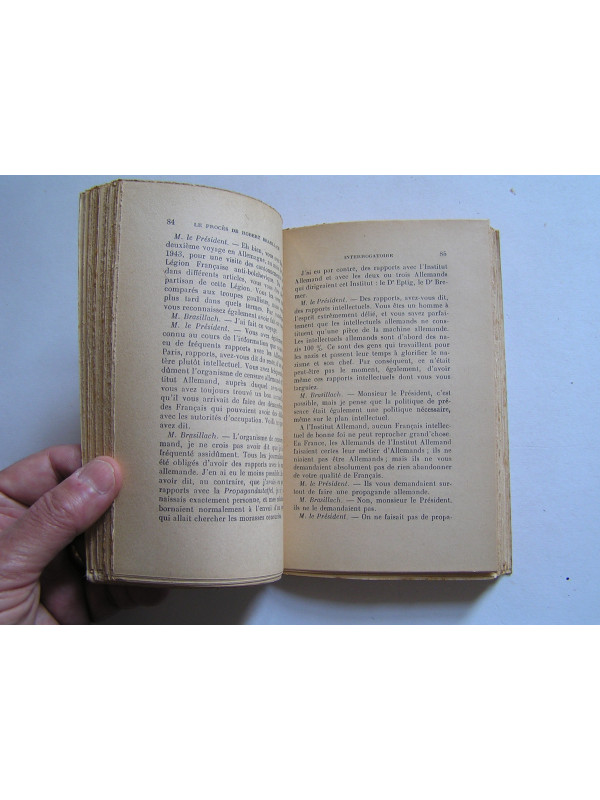 Par son défenseur, les pièces du procès de Robert Brasillach le 19 janvier 1945 qui devait durer six heures pour une codamnation à mort exécutée le 6 février 1945.