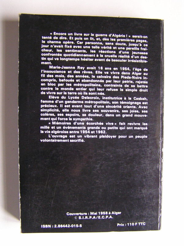 Ce livre fait revivre les mille et un événements petits et grands qui ont marqué la vie algéroise entre 1954 et 1962. Ce témoignage, criant de sincérité, est un vibrant plaidoyer pour un peuple volontairement sacrifié.