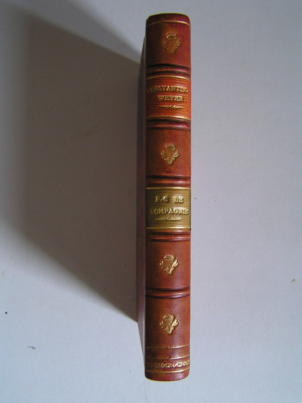 Ouvrage établi dans une petite mais agréable reliure en demi-veau rouge marbré, dos à cinq nerfs avec pièces de titre et auteur et motifs décoratifs dorés; en bon état (dos légèrement insolé); ouvrage solide et intérieur bien propre malgré quelques pointes de rousseurs sur les tranches et les gardes.