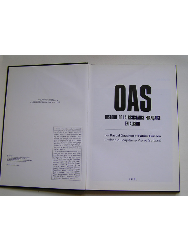 "Cet ouvrage a été réalisé à partir de témoignages et de documents venant des acteurs et des témoins directs du combat pour l'Algérie française." Un album richement illustré de photographies et documents d'époque et, en fin de volume "Les plus beaux textes de l'Algérie française" avec les témoignages des principales personnalités proches de l'OAS