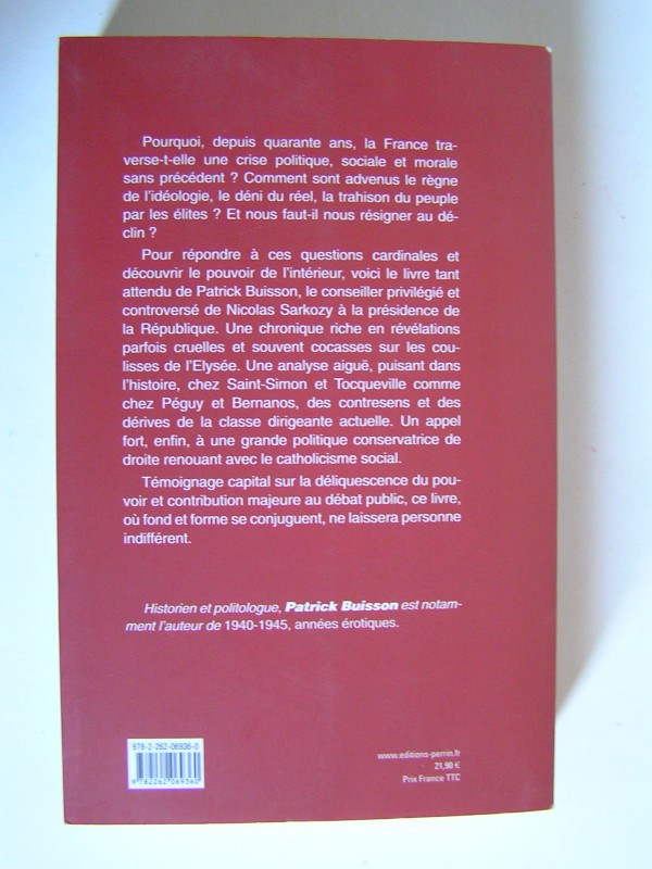 Un livre fort intéressant car, au-delà des anecdotes, l'auteur se livre à une analyse fine de l'état de la France et des Français qu'il complète par une recherche des solutions puissées dans l'étude de l'Histoire et dans l'approche des idées philosophiques voire spirituelles. Ce livre est un plaidoyer pour un retour à une grande politique conservatrice de droite renouant avec le catholicisme social.