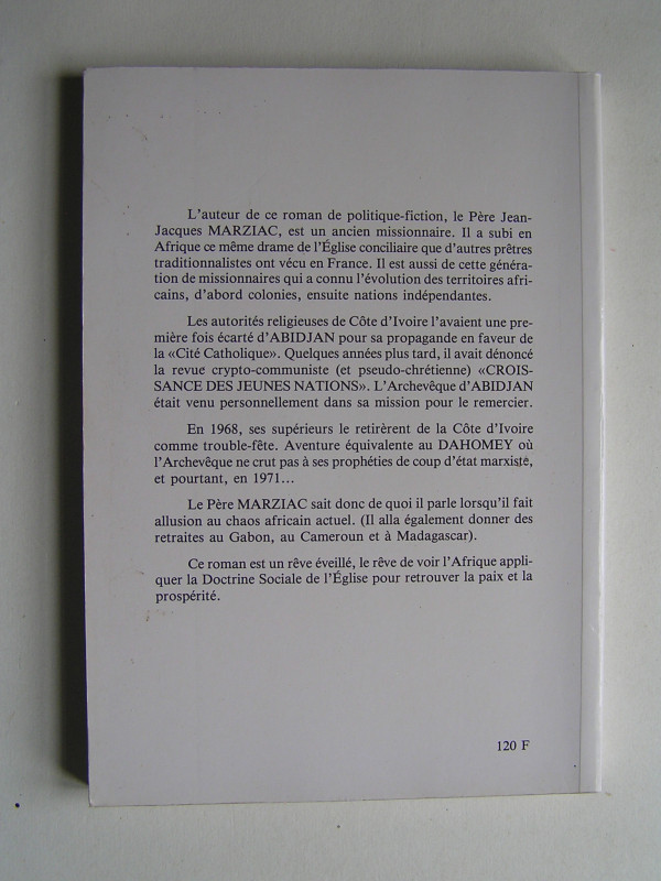 Ce roman est un rêve éveillé, le rêve de voir l'Afrique appliquer la Doctrine Sociale de l'Eglise...