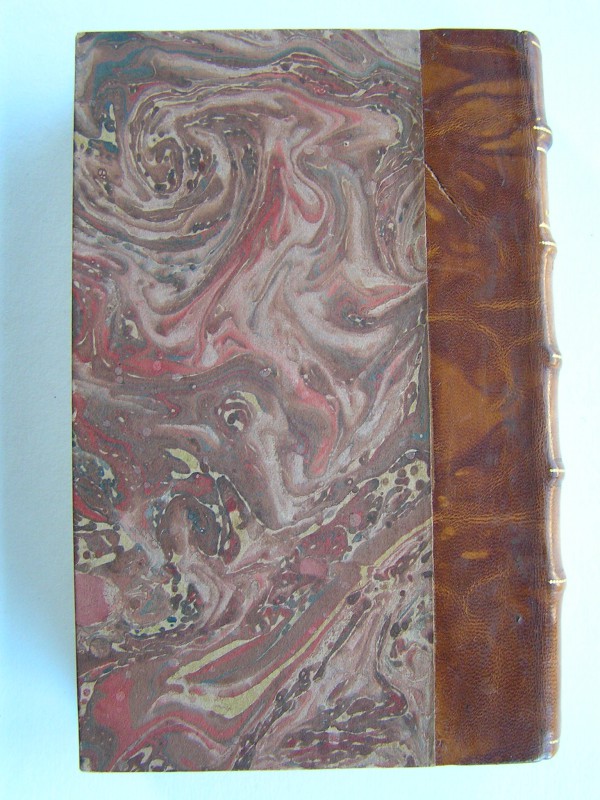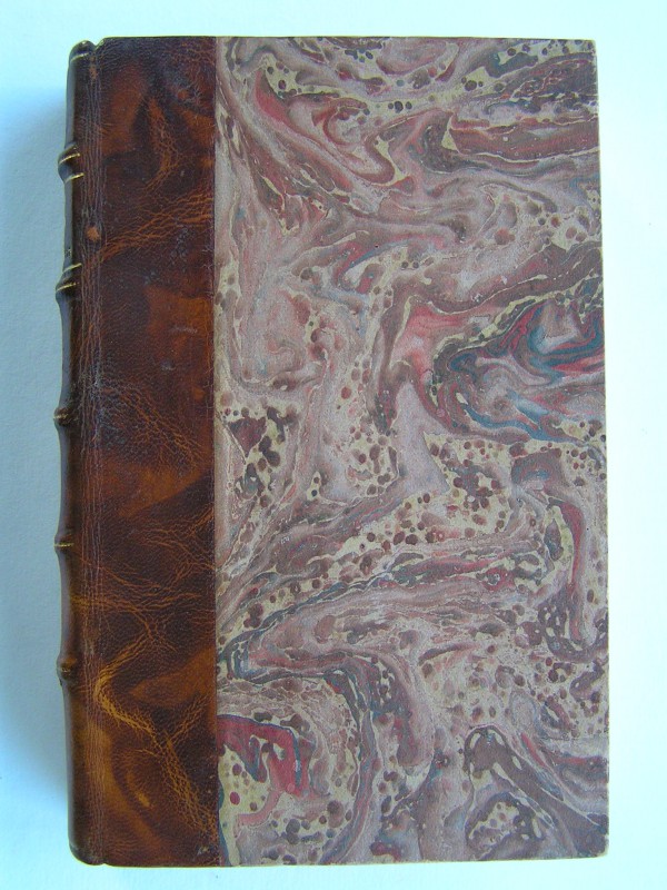 Dans une sobre, mais agréable, reliure en demi-cuir marbré brun, dos à cinq nerfs, en bon état. Intérieur bien propre (tranche de tête un peu salie).